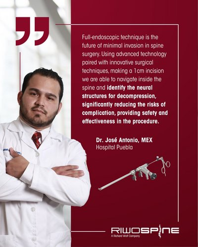 Shaping the future of spine surgery. RIWOspine is a pioneer in full-endoscopic spine surgery with more than 30 years of experience, providing state-of-the-art instruments and system solutions that enable surgeons to perform minimally invasive procedures with unmatched accuracy, control and confidence. Our comprehensive portfolio combines advanced endoscopic technologies with expert-led educational programs designed specifically for healthcare professionals.