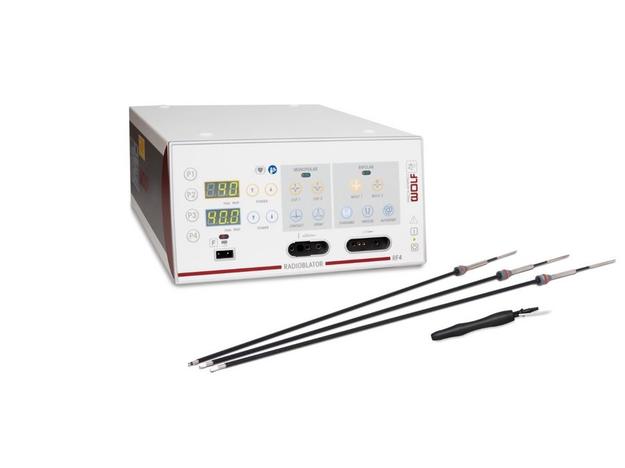 The Radioblator RF4 Radiofrequency Generator operates at an advanced frequency of 4 MHz, enabling precise and tissue-preserving coagulation. Its higher frequency, compared to standard devices, reduces thermal damage to surrounding tissue. The active TipControl RF Electrode ensures accurate and controlled delivery of radiofrequency energy to target tissues.