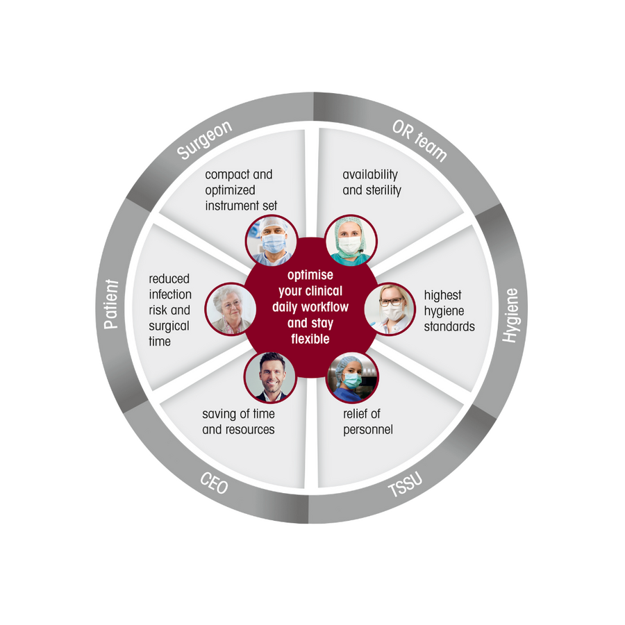 Designed for the highest hygiene standards, it helps to lower infection risk and surgical time.