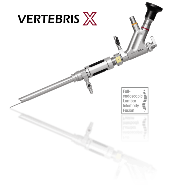 The VERTEBRIS X instrument set represents a true milestone of innovation and advancement in spine endoscopy. A larger telescope with a correspondingly larger intra-endoscope working channel and larger, stronger instruments were necessary for the more extensive bone and ligament resection necessitated in this operation. The instrument set is complemented by the universal motor system and a variety of rigid and articulated burrs.