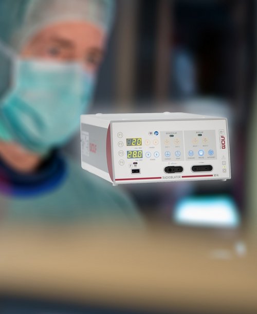4MHzの周波数を持つ高周波発生装置「Radioblator RF4」は、この効果的な組織温存凝固システムの心臓部です。角度調整が可能なTipControl RF電極と組み合わせることで、組織における高周波照射の位置制御をより正確に行います。